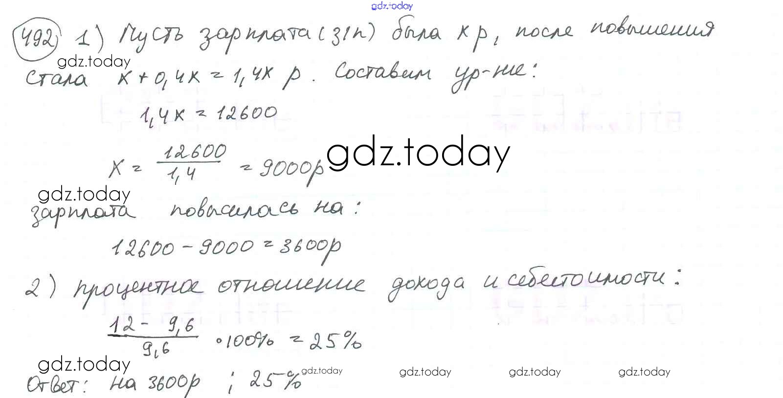 Ответы к Решение. Часть 1. Упражнения 492 Учебнику по Математике для 6 класса Петерсон, Дорофеев Ювента Учусь учиться 2014