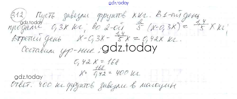 Ответы к Решение. Часть 3. Упражнения 312 Учебнику по Математике для 6 класса Петерсон, Дорофеев Ювента Учусь учиться 2014