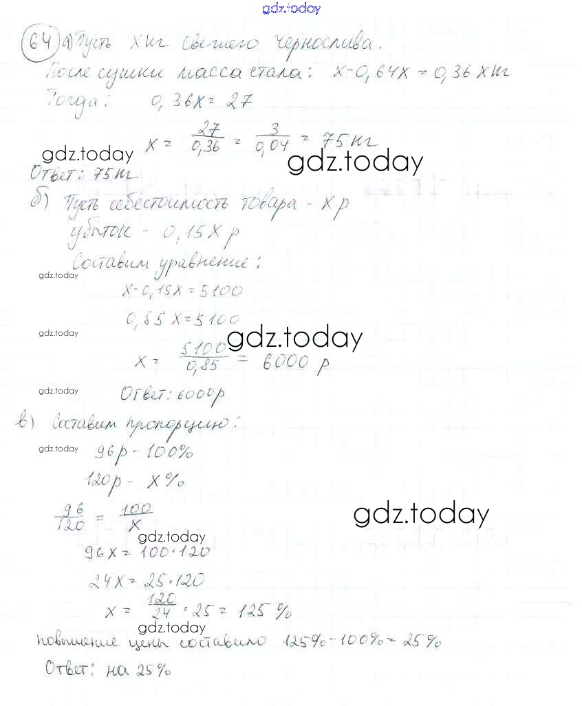 Ответы к Решение. Часть 3. Упражнения 64 Учебнику по Математике для 6 класса Петерсон, Дорофеев Ювента Учусь учиться 2014