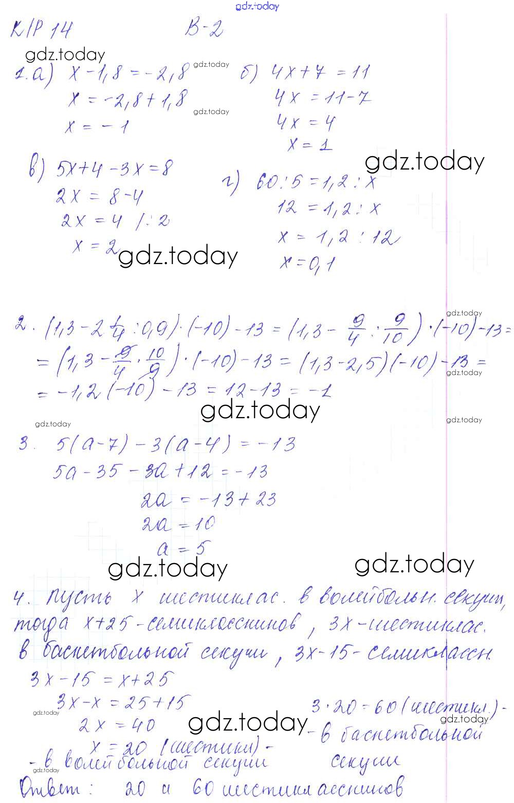 На страницах сайта gdz.today вы найдете учебный и вспомогательный материал, направленный на улучшения знаний школьной программы. ГДЗ - онлайн мир знаний Решение к КР-14. Варианты 2 Контрольным работам по Математике для 6 класса Дудницын, Кронгауз Экзамен УМК 2013
