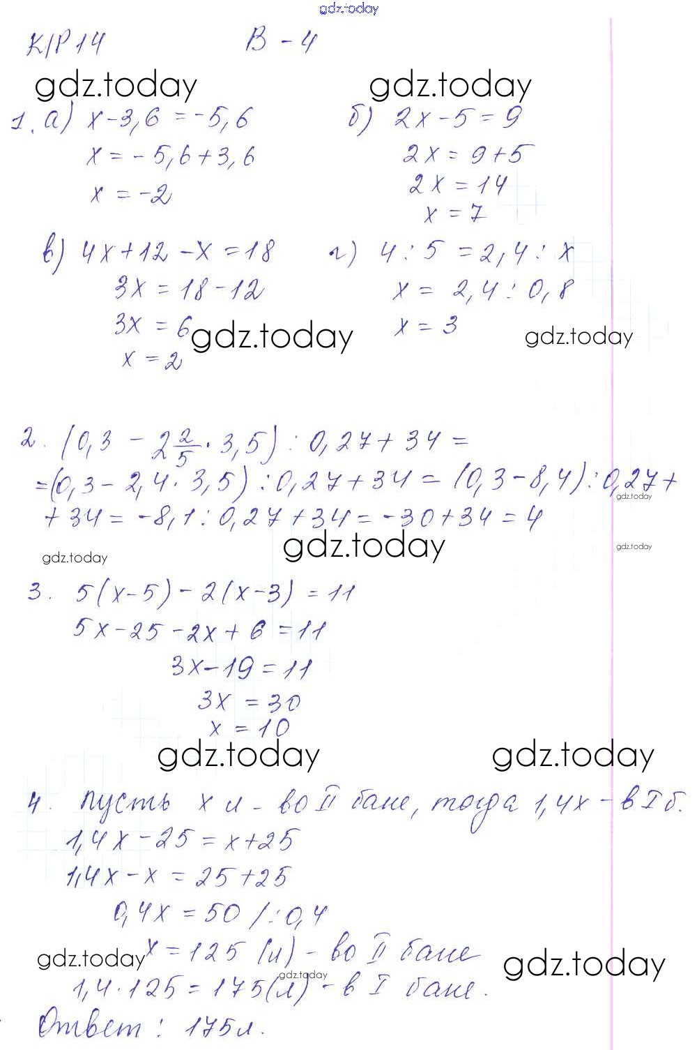 На страницах сайта gdz.today вы найдете учебный и вспомогательный материал, направленный на улучшения знаний школьной программы. ГДЗ - онлайн мир знаний Решение к КР-14. Варианты 4 Контрольным работам по Математике для 6 класса Дудницын, Кронгауз Экзамен УМК 2013