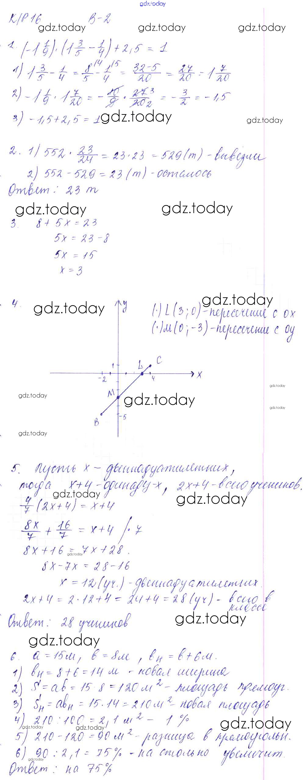 Ответы к Решение к КР-16. Варианты 2 Контрольным работам по Математике для 6 класса Дудницын, Кронгауз Экзамен УМК 2013