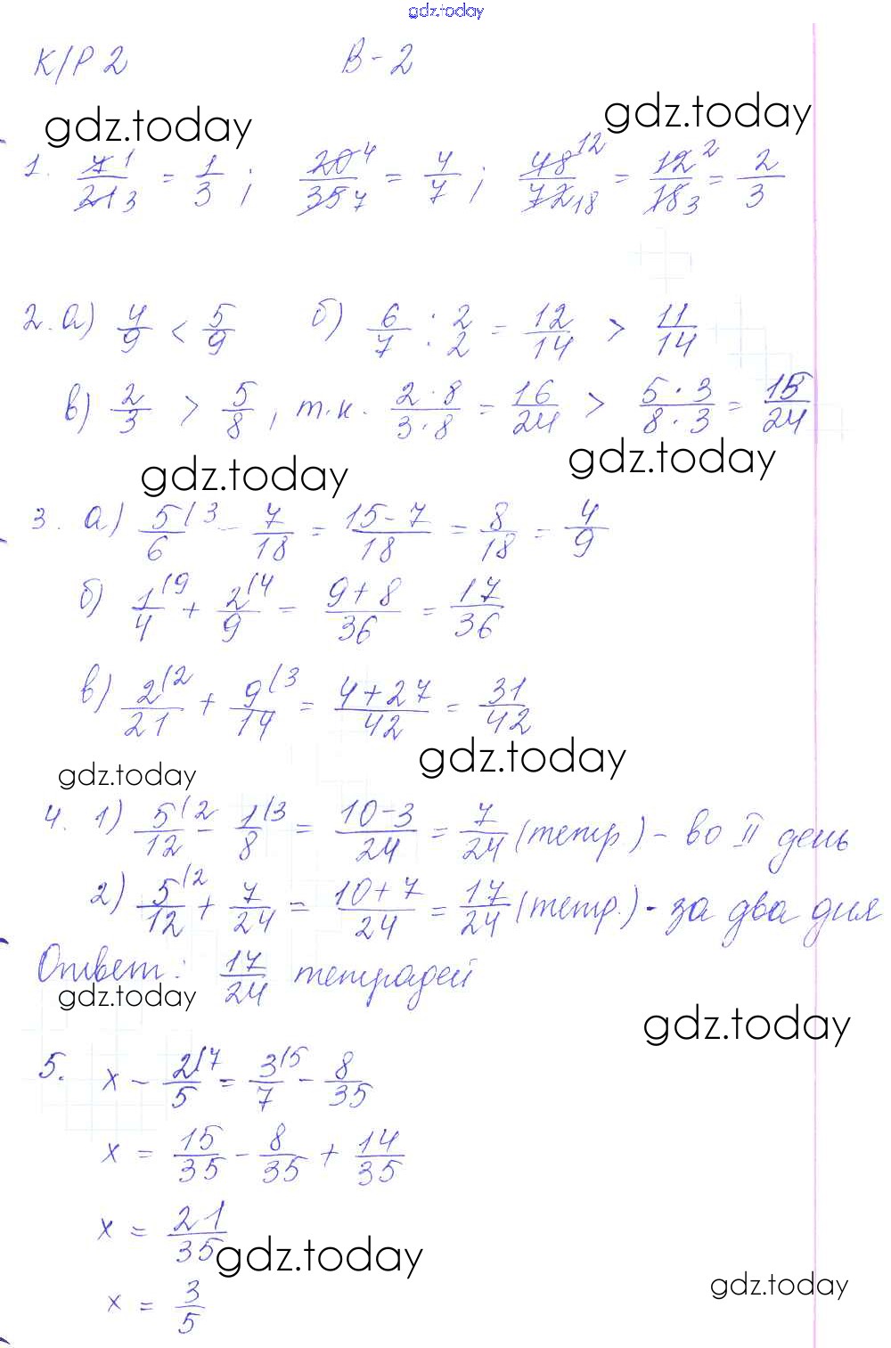 Ответы к Решение к КР-2. Варианты 2 Контрольным работам по Математике для 6 класса Дудницын, Кронгауз Экзамен УМК 2013