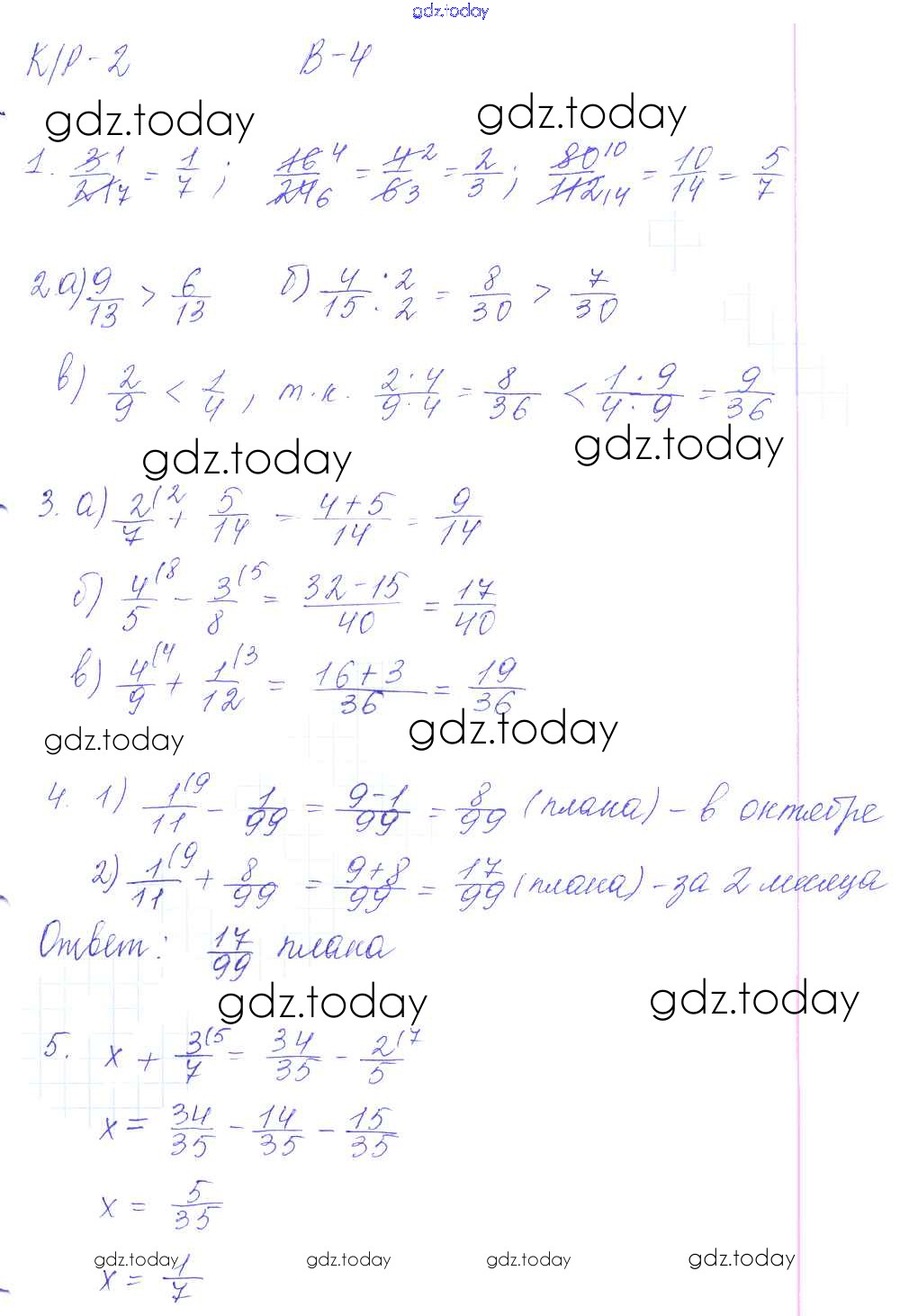 Ответы к Решение к КР-2. Варианты 4 Контрольным работам по Математике для 6 класса Дудницын, Кронгауз Экзамен УМК 2013