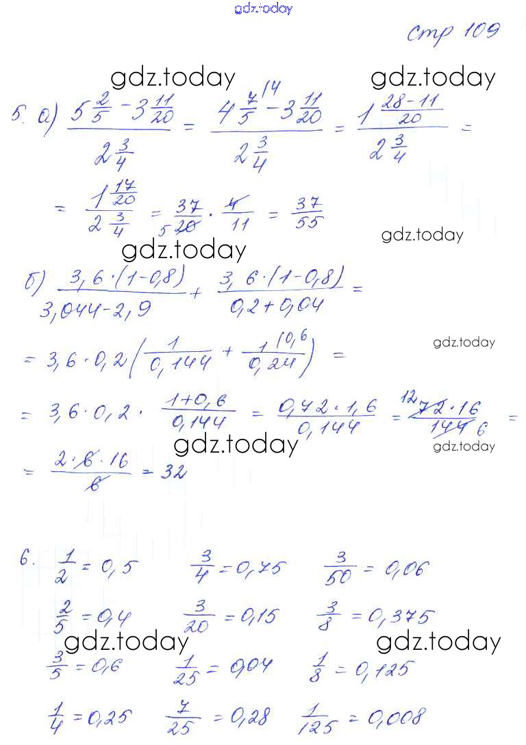 На страницах сайта gdz.today вы найдете учебный и вспомогательный материал, направленный на улучшения знаний школьной программы. ГДЗ - онлайн мир знаний Решение к части 1. Страницы 109 Рабочей тетради по Математике для 6 класса Ерина Экзамен УМК 2020