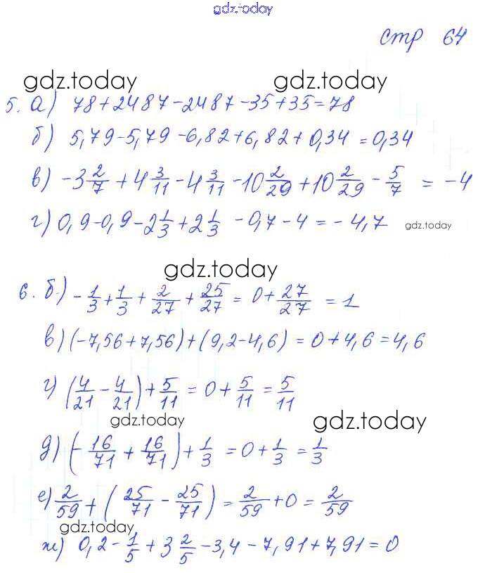 На страницах сайта gdz.today вы найдете учебный и вспомогательный материал, направленный на улучшения знаний школьной программы. ГДЗ - онлайн мир знаний Решение к части 2. Страницы 64 Рабочей тетради по Математике для 6 класса Ерина Экзамен УМК 2020