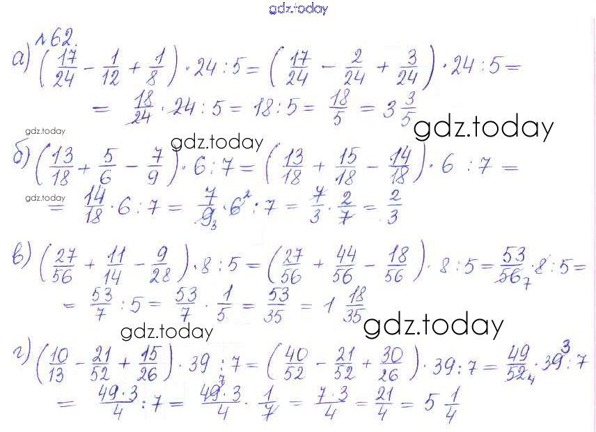 Ответы к Повторение 62 Сборнику задач и упражнений по Математике для 6 класса Гамбарин, Зубарева Мнемозина 2011