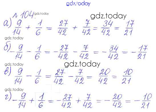 Ответы к Решение к упражнениям 104 Сборнику задач и упражнений по Математике для 6 класса Гамбарин, Зубарева Мнемозина 2011