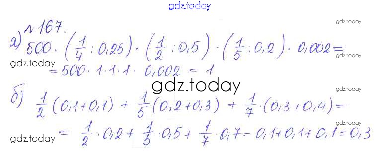 Ответы к Решение к упражнениям 167 Сборнику задач и упражнений по Математике для 6 класса Гамбарин, Зубарева Мнемозина 2011