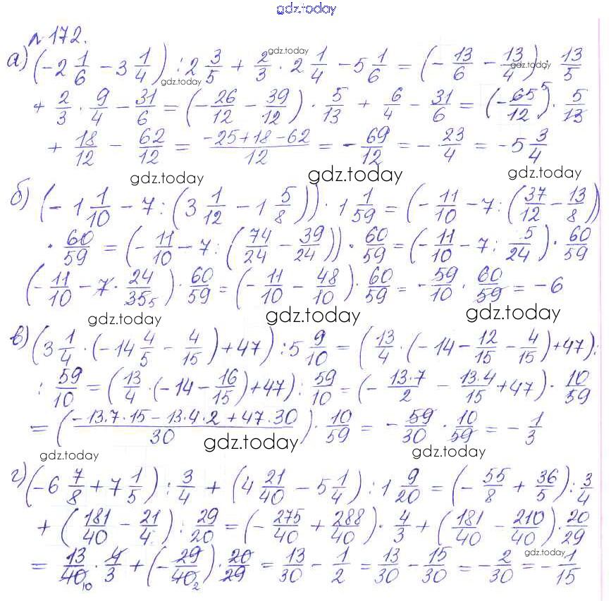 Ответы к Решение к упражнениям 172 Сборнику задач и упражнений по Математике для 6 класса Гамбарин, Зубарева Мнемозина 2011