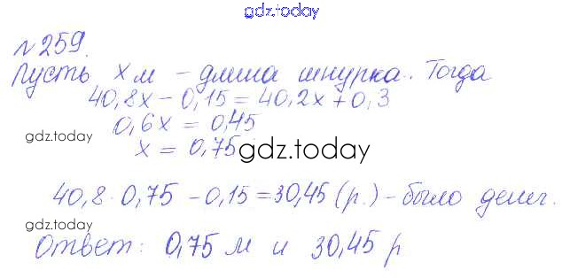 Ответы к Решение к упражнениям 259 Сборнику задач и упражнений по Математике для 6 класса Гамбарин, Зубарева Мнемозина 2011