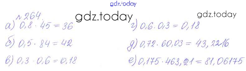 Ответы к Решение к упражнениям 264 Сборнику задач и упражнений по Математике для 6 класса Гамбарин, Зубарева Мнемозина 2011