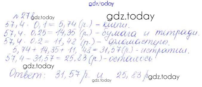 Ответы к Решение к упражнениям 278 Сборнику задач и упражнений по Математике для 6 класса Гамбарин, Зубарева Мнемозина 2011