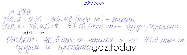 Ответы к Решение к упражнениям 279 Сборнику задач и упражнений по Математике для 6 класса Гамбарин, Зубарева Мнемозина 2011