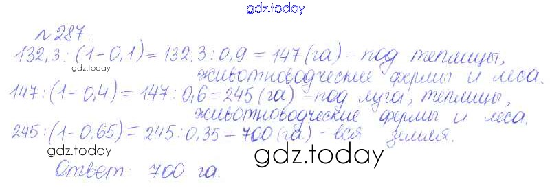 Ответы к Решение к упражнениям 287 Сборнику задач и упражнений по Математике для 6 класса Гамбарин, Зубарева Мнемозина 2011
