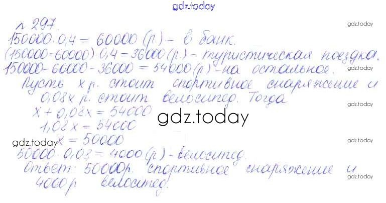 Ответы к Решение к упражнениям 297 Сборнику задач и упражнений по Математике для 6 класса Гамбарин, Зубарева Мнемозина 2011
