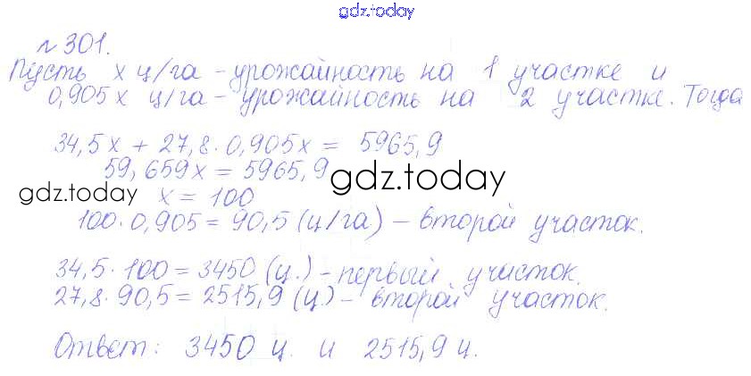 Ответы к Решение к упражнениям 301 Сборнику задач и упражнений по Математике для 6 класса Гамбарин, Зубарева Мнемозина 2011