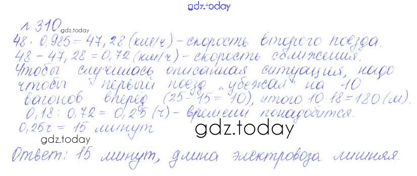 Ответы к Решение к упражнениям 310 Сборнику задач и упражнений по Математике для 6 класса Гамбарин, Зубарева Мнемозина 2011