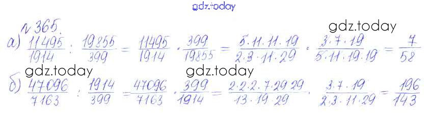 Ответы к Решение к упражнениям 365 Сборнику задач и упражнений по Математике для 6 класса Гамбарин, Зубарева Мнемозина 2011