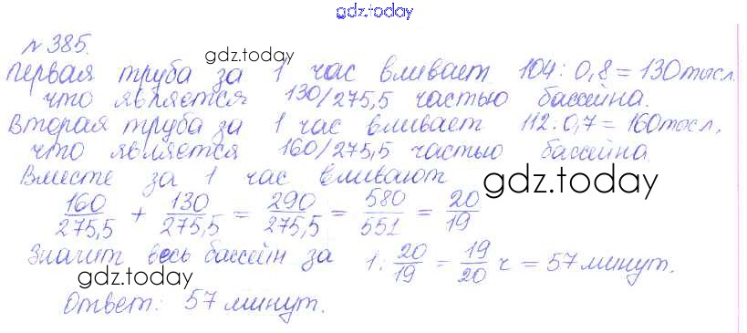Ответы к Решение к упражнениям 385 Сборнику задач и упражнений по Математике для 6 класса Гамбарин, Зубарева Мнемозина 2011