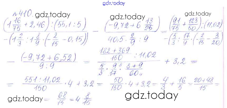 Ответы к Решение к упражнениям 410 Сборнику задач и упражнений по Математике для 6 класса Гамбарин, Зубарева Мнемозина 2011