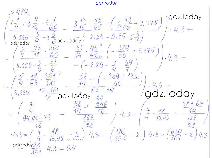Ответы к Решение к упражнениям 414 Сборнику задач и упражнений по Математике для 6 класса Гамбарин, Зубарева Мнемозина 2011