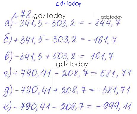 Ответы к Решение к упражнениям 78 Сборнику задач и упражнений по Математике для 6 класса Гамбарин, Зубарева Мнемозина 2011