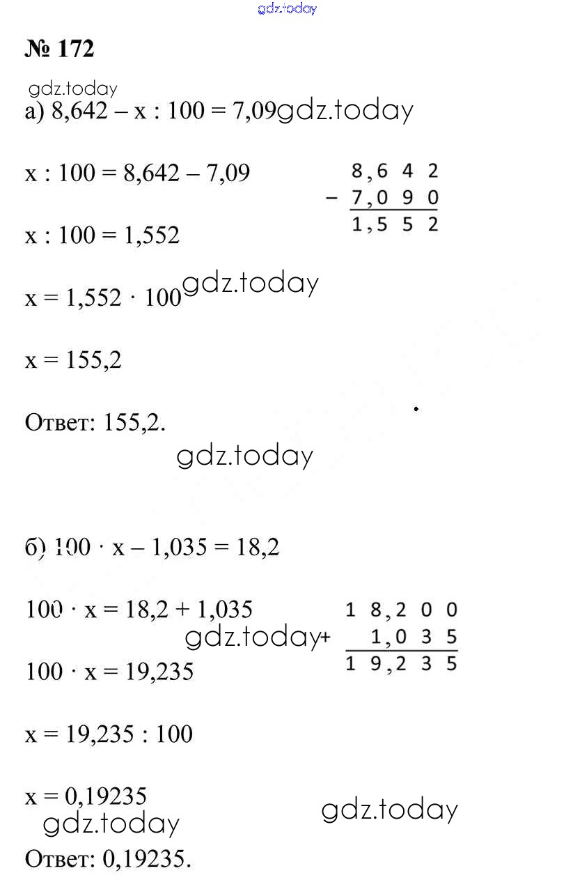 Ответы к Упражнения Решение к главе 1 172 Учебнику по Математике для 6 класса Герасимов, Пирютко Образование и воспитание 2018