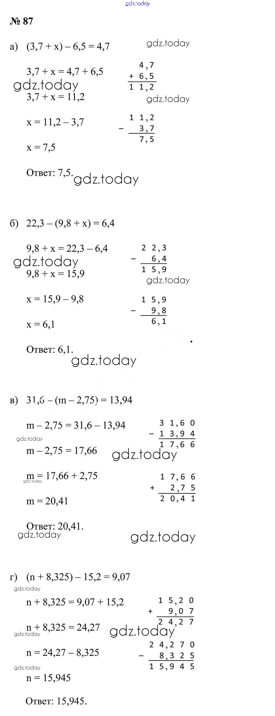 Ответы к Упражнения Решение к главе 1 87 Учебнику по Математике для 6 класса Герасимов, Пирютко Образование и воспитание 2018