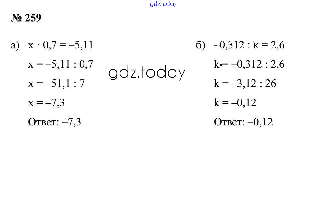 Ответы к Упражнения Решение к главе 4 259 Учебнику по Математике для 6 класса Герасимов, Пирютко Образование и воспитание 2018