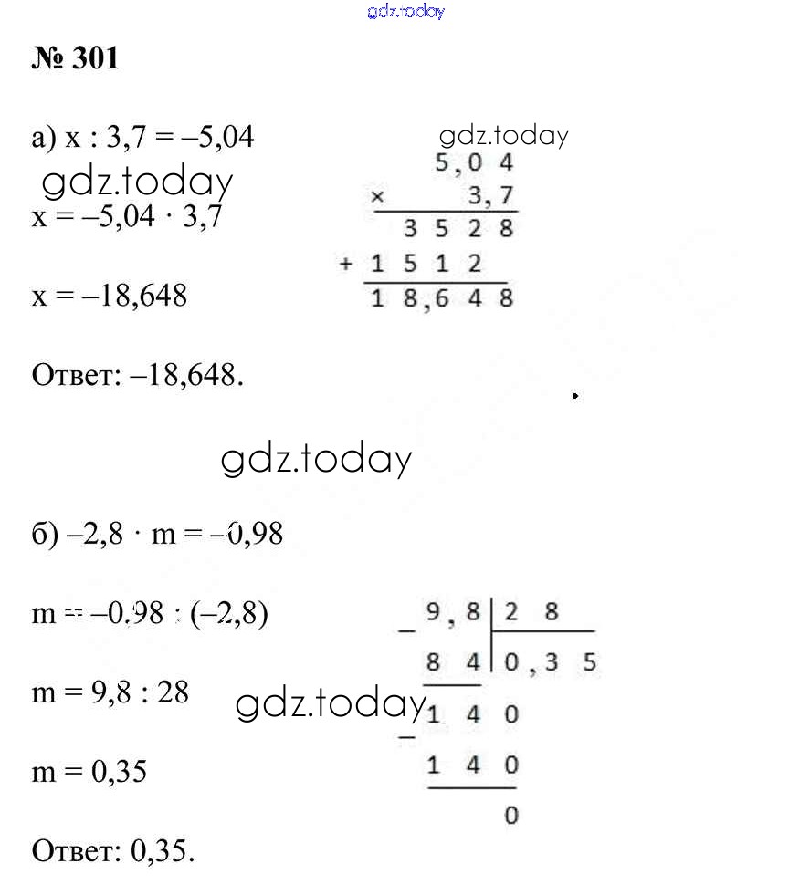 Ответы к Упражнения Решение к главе 4 301 Учебнику по Математике для 6 класса Герасимов, Пирютко Образование и воспитание 2018