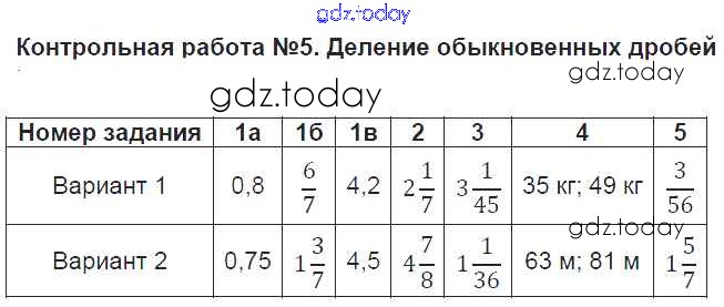 Ответы к Решение к контрольным работам 5 Контрольно-измерительным материалам (КИМ) по Математике для 6 класса Глазков, Ахременкова Экзамен 2014
