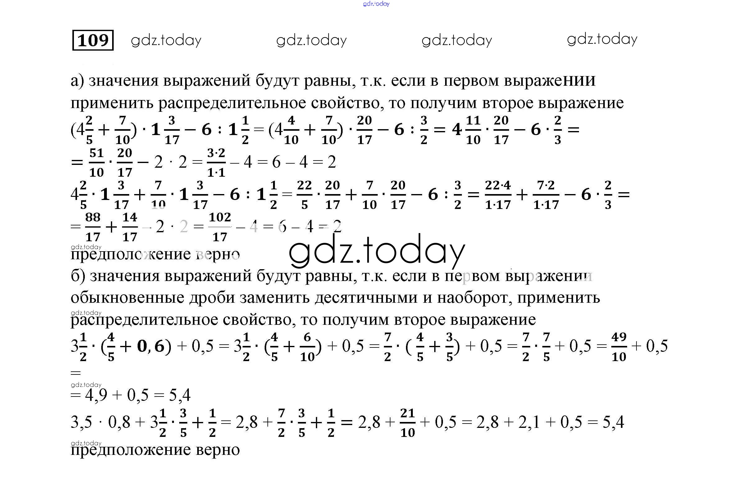 На страницах сайта gdz.today вы найдете учебный и вспомогательный материал, направленный на улучшения знаний школьной программы. ГДЗ - онлайн мир знаний Решение к заданиям 109 Учебнику по Математике для 6 класса Истомина Ассоциация 21 век 2015