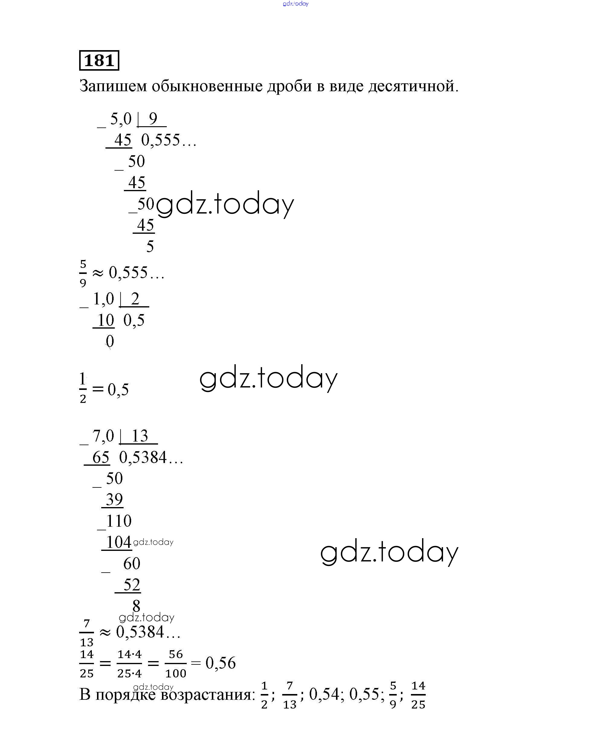На страницах сайта gdz.today вы найдете учебный и вспомогательный материал, направленный на улучшения знаний школьной программы. ГДЗ - онлайн мир знаний Решение к заданиям 181 Учебнику по Математике для 6 класса Истомина Ассоциация 21 век 2015
