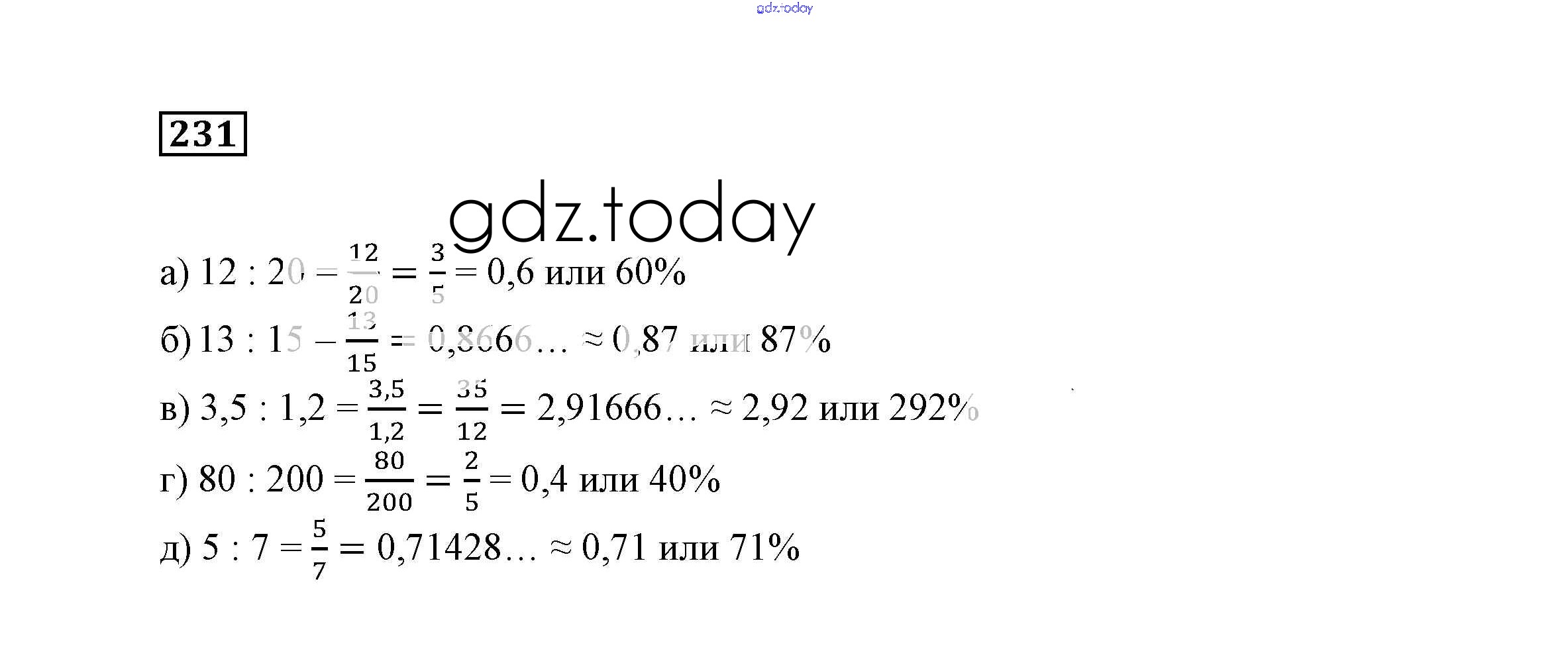 На страницах сайта gdz.today вы найдете учебный и вспомогательный материал, направленный на улучшения знаний школьной программы. ГДЗ - онлайн мир знаний Решение к заданиям 231 Учебнику по Математике для 6 класса Истомина Ассоциация 21 век 2015