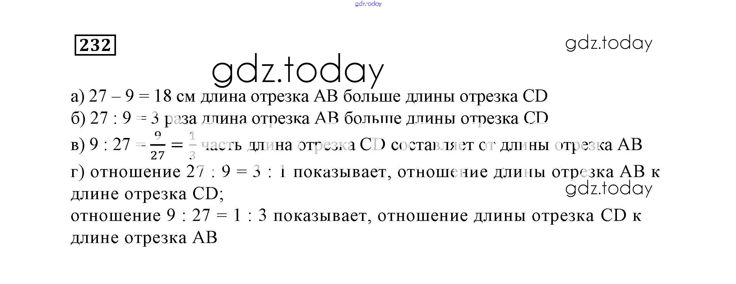 На страницах сайта gdz.today вы найдете учебный и вспомогательный материал, направленный на улучшения знаний школьной программы. ГДЗ - онлайн мир знаний Решение к заданиям 232 Учебнику по Математике для 6 класса Истомина Ассоциация 21 век 2015