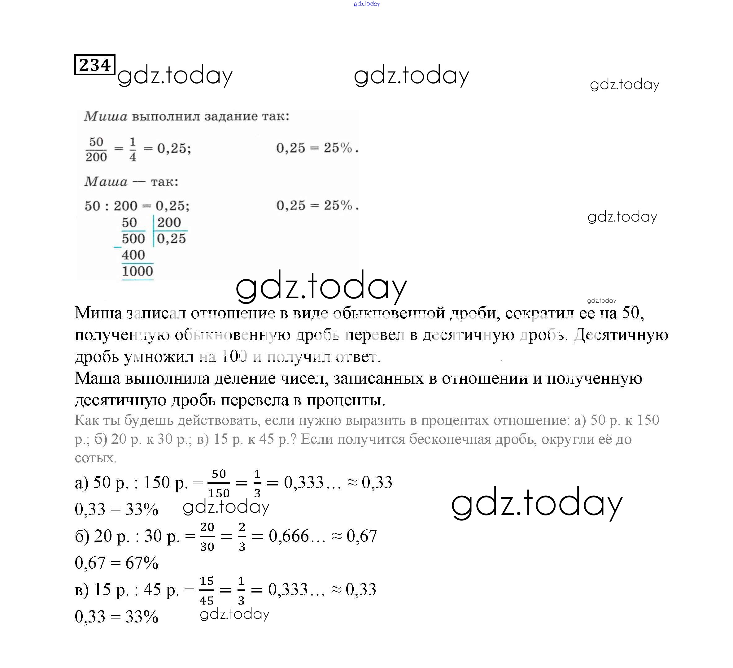 На страницах сайта gdz.today вы найдете учебный и вспомогательный материал, направленный на улучшения знаний школьной программы. ГДЗ - онлайн мир знаний Решение к заданиям 234 Учебнику по Математике для 6 класса Истомина Ассоциация 21 век 2015