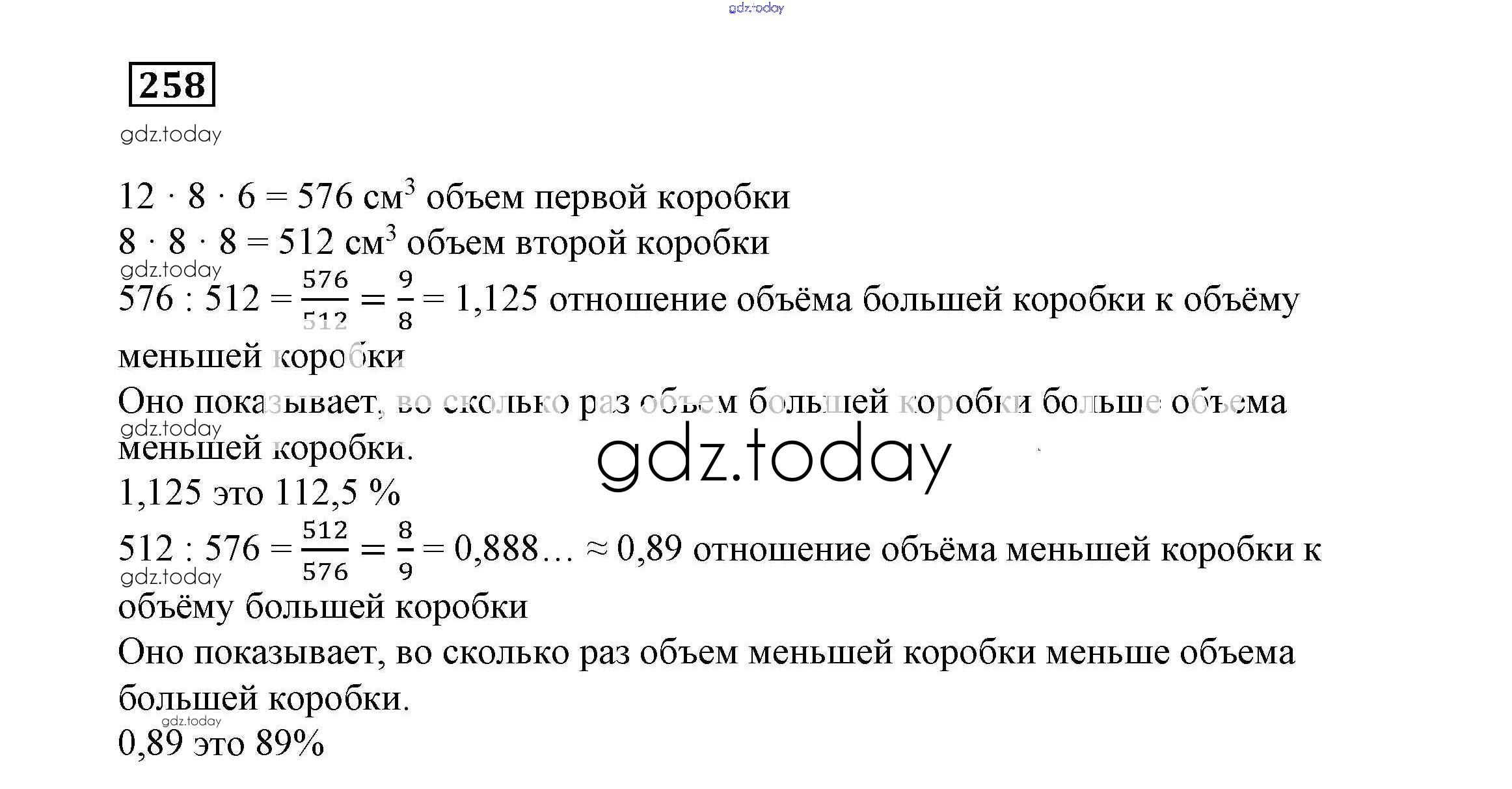 На страницах сайта gdz.today вы найдете учебный и вспомогательный материал, направленный на улучшения знаний школьной программы. ГДЗ - онлайн мир знаний Решение к заданиям 258 Учебнику по Математике для 6 класса Истомина Ассоциация 21 век 2015