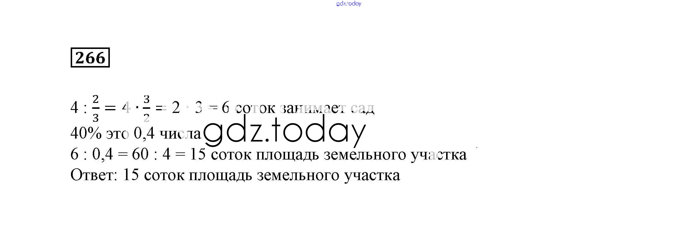На страницах сайта gdz.today вы найдете учебный и вспомогательный материал, направленный на улучшения знаний школьной программы. ГДЗ - онлайн мир знаний Решение к заданиям 266 Учебнику по Математике для 6 класса Истомина Ассоциация 21 век 2015