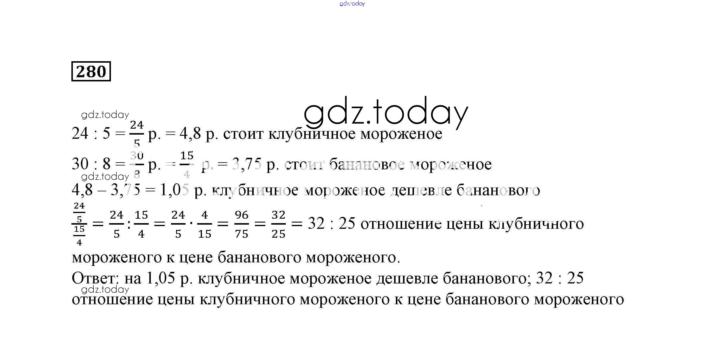 На страницах сайта gdz.today вы найдете учебный и вспомогательный материал, направленный на улучшения знаний школьной программы. ГДЗ - онлайн мир знаний Решение к заданиям 280 Учебнику по Математике для 6 класса Истомина Ассоциация 21 век 2015