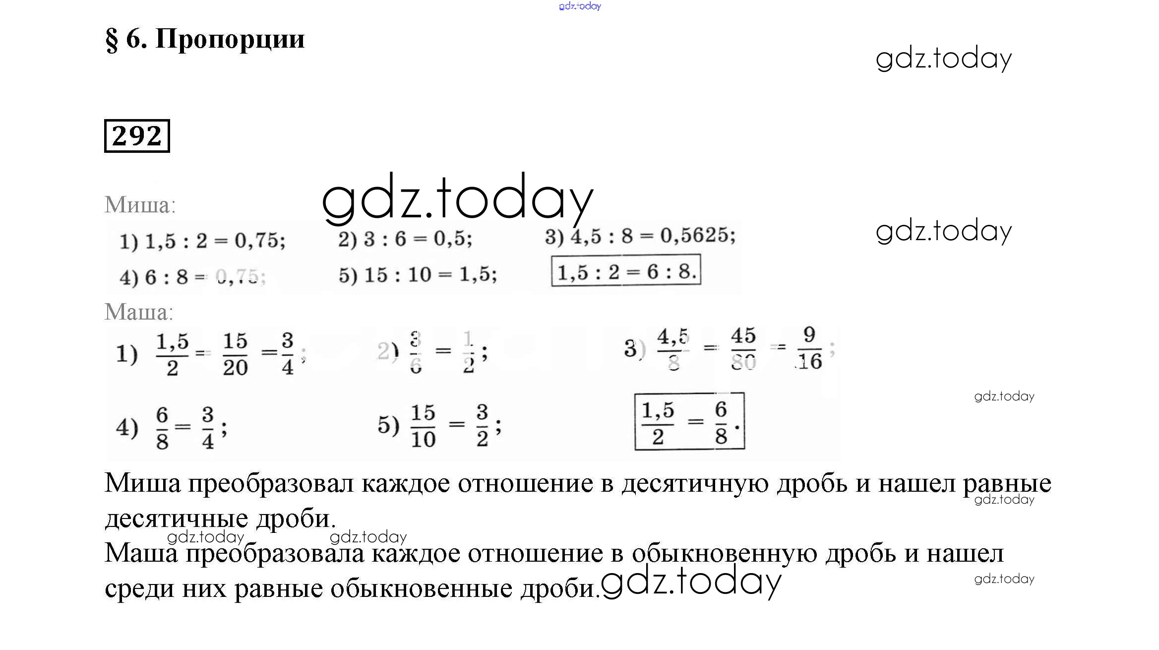 На страницах сайта gdz.today вы найдете учебный и вспомогательный материал, направленный на улучшения знаний школьной программы. ГДЗ - онлайн мир знаний Решение к заданиям 292 Учебнику по Математике для 6 класса Истомина Ассоциация 21 век 2015