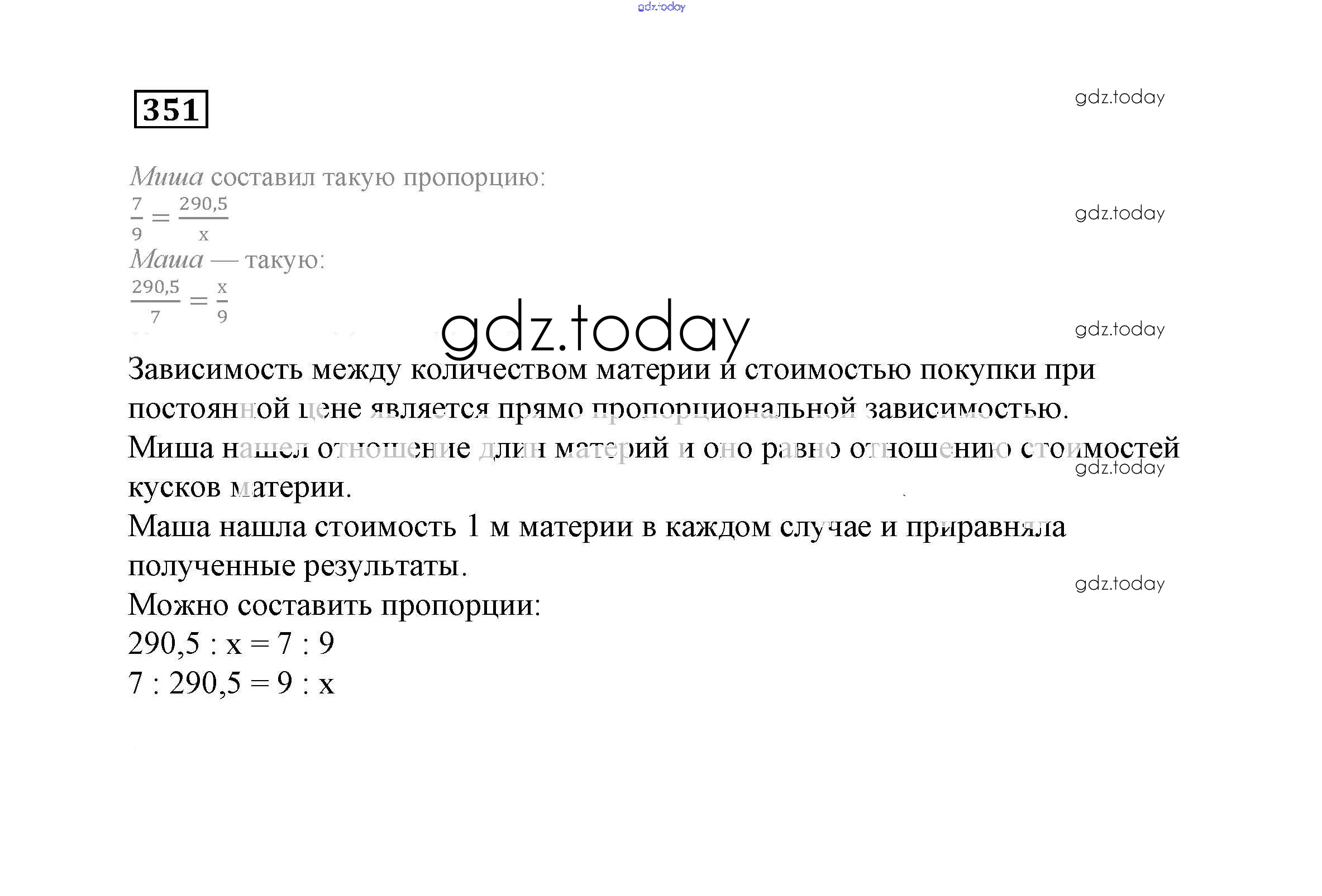 На страницах сайта gdz.today вы найдете учебный и вспомогательный материал, направленный на улучшения знаний школьной программы. ГДЗ - онлайн мир знаний Решение к заданиям 351 Учебнику по Математике для 6 класса Истомина Ассоциация 21 век 2015