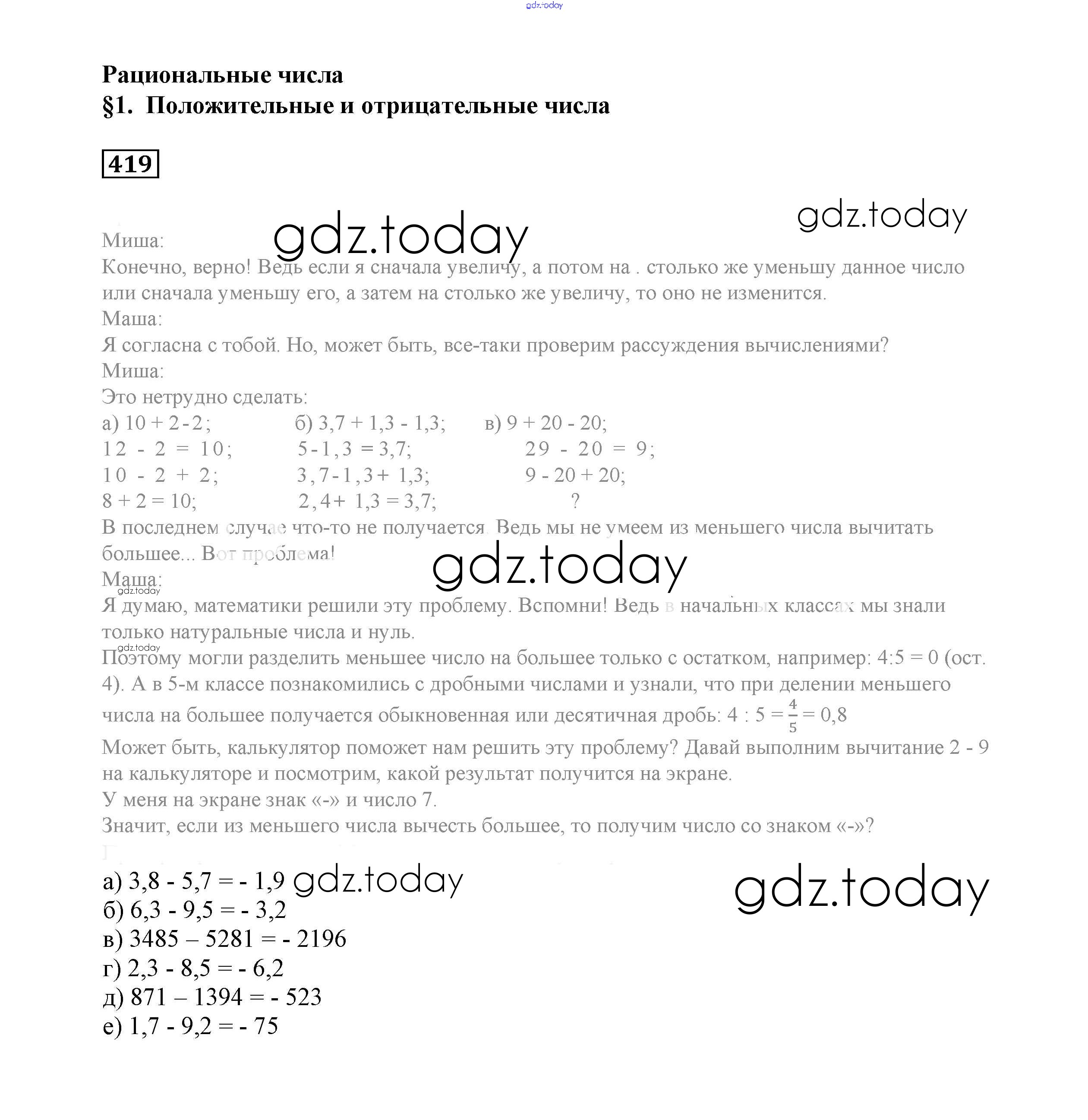 На страницах сайта gdz.today вы найдете учебный и вспомогательный материал, направленный на улучшения знаний школьной программы. ГДЗ - онлайн мир знаний Решение к заданиям 419 Учебнику по Математике для 6 класса Истомина Ассоциация 21 век 2015
