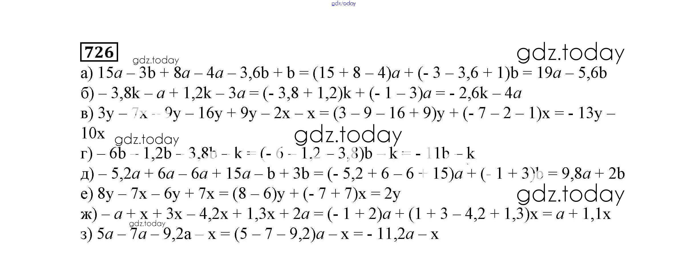 На страницах сайта gdz.today вы найдете учебный и вспомогательный материал, направленный на улучшения знаний школьной программы. ГДЗ - онлайн мир знаний Решение к заданиям 726 Учебнику по Математике для 6 класса Истомина Ассоциация 21 век 2015