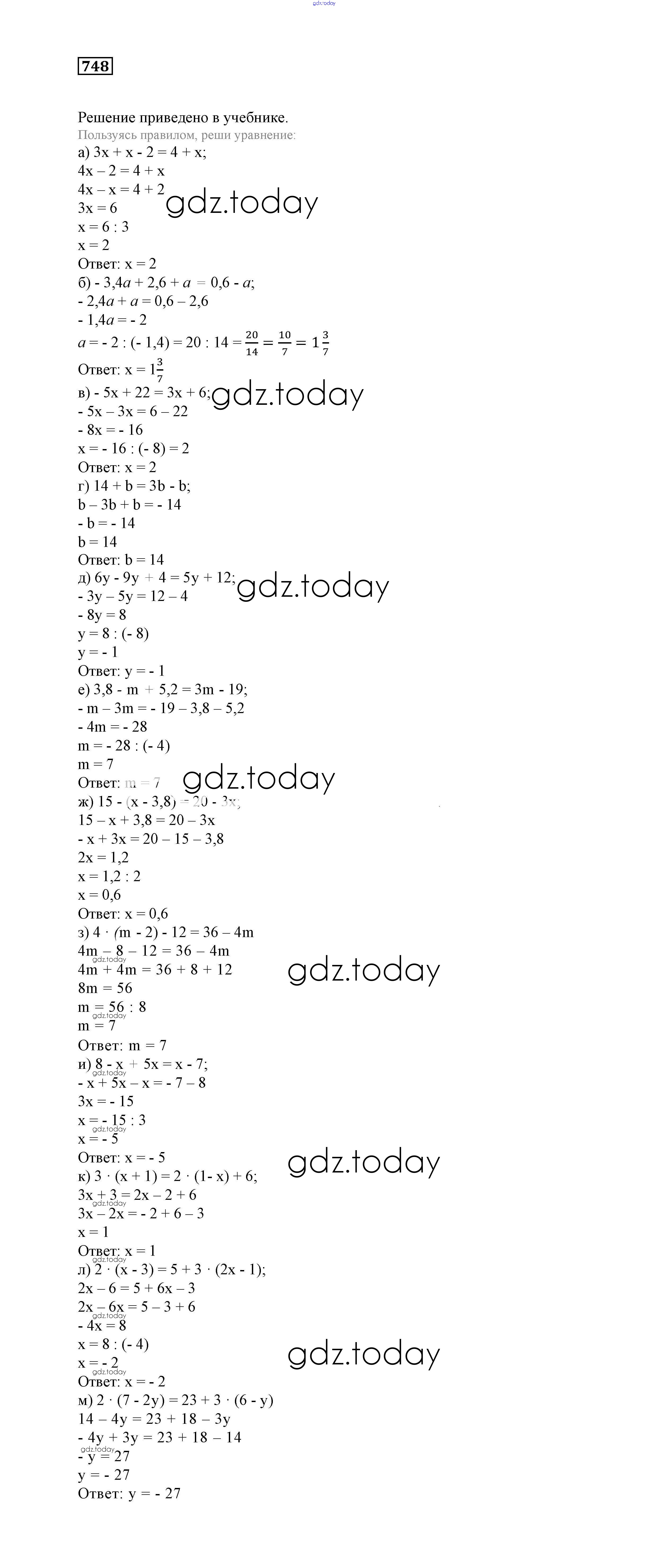 На страницах сайта gdz.today вы найдете учебный и вспомогательный материал, направленный на улучшения знаний школьной программы. ГДЗ - онлайн мир знаний Решение к заданиям 748 Учебнику по Математике для 6 класса Истомина Ассоциация 21 век 2015