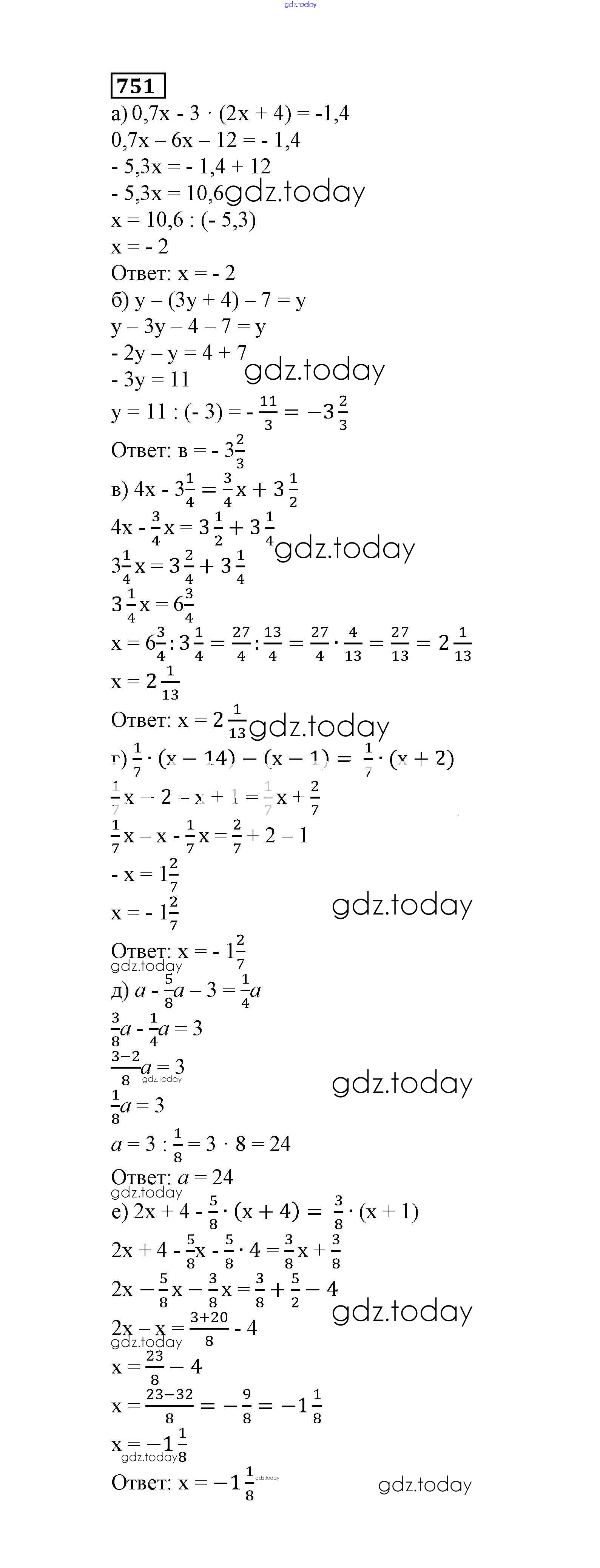 На страницах сайта gdz.today вы найдете учебный и вспомогательный материал, направленный на улучшения знаний школьной программы. ГДЗ - онлайн мир знаний Решение к заданиям 751 Учебнику по Математике для 6 класса Истомина Ассоциация 21 век 2015
