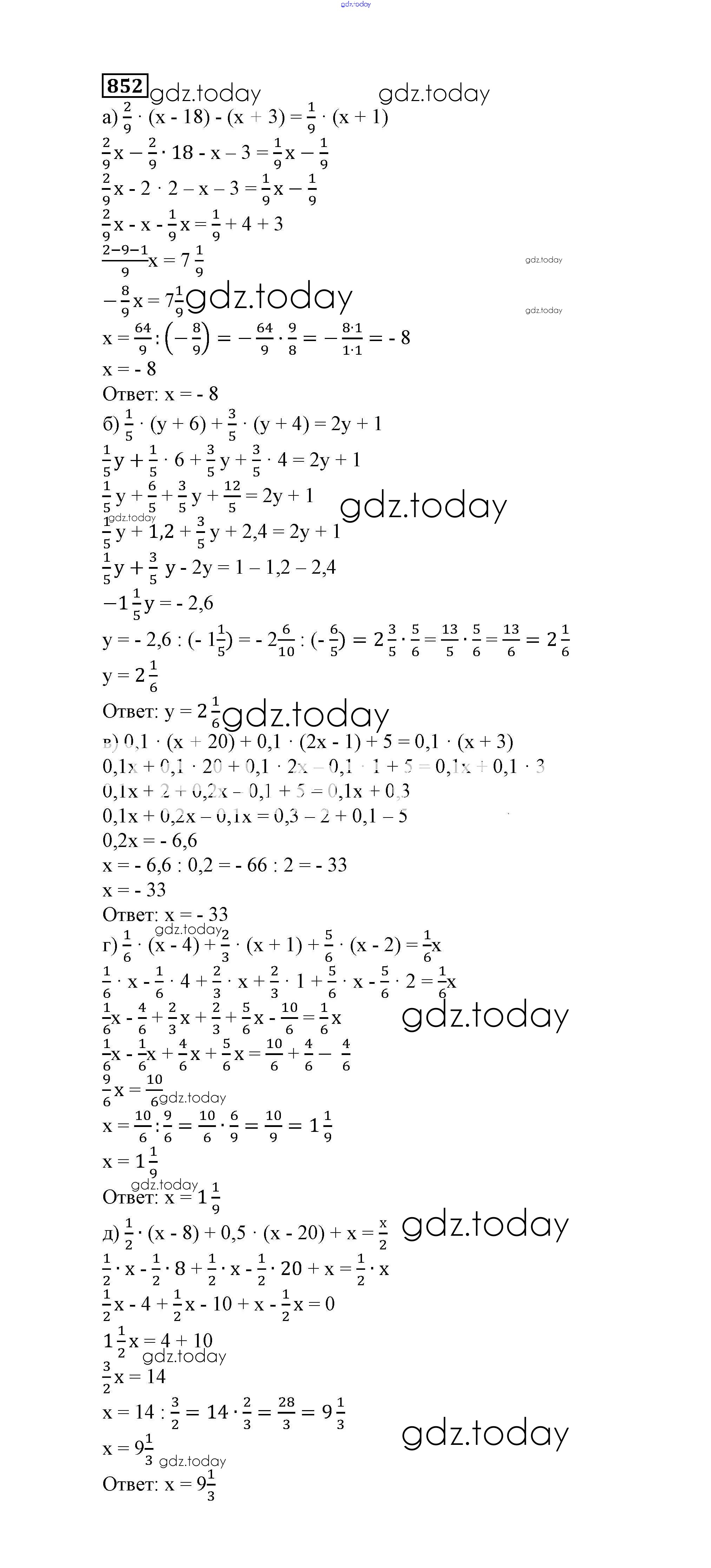 На страницах сайта gdz.today вы найдете учебный и вспомогательный материал, направленный на улучшения знаний школьной программы. ГДЗ - онлайн мир знаний Решение к заданиям 852 Учебнику по Математике для 6 класса Истомина Ассоциация 21 век 2015