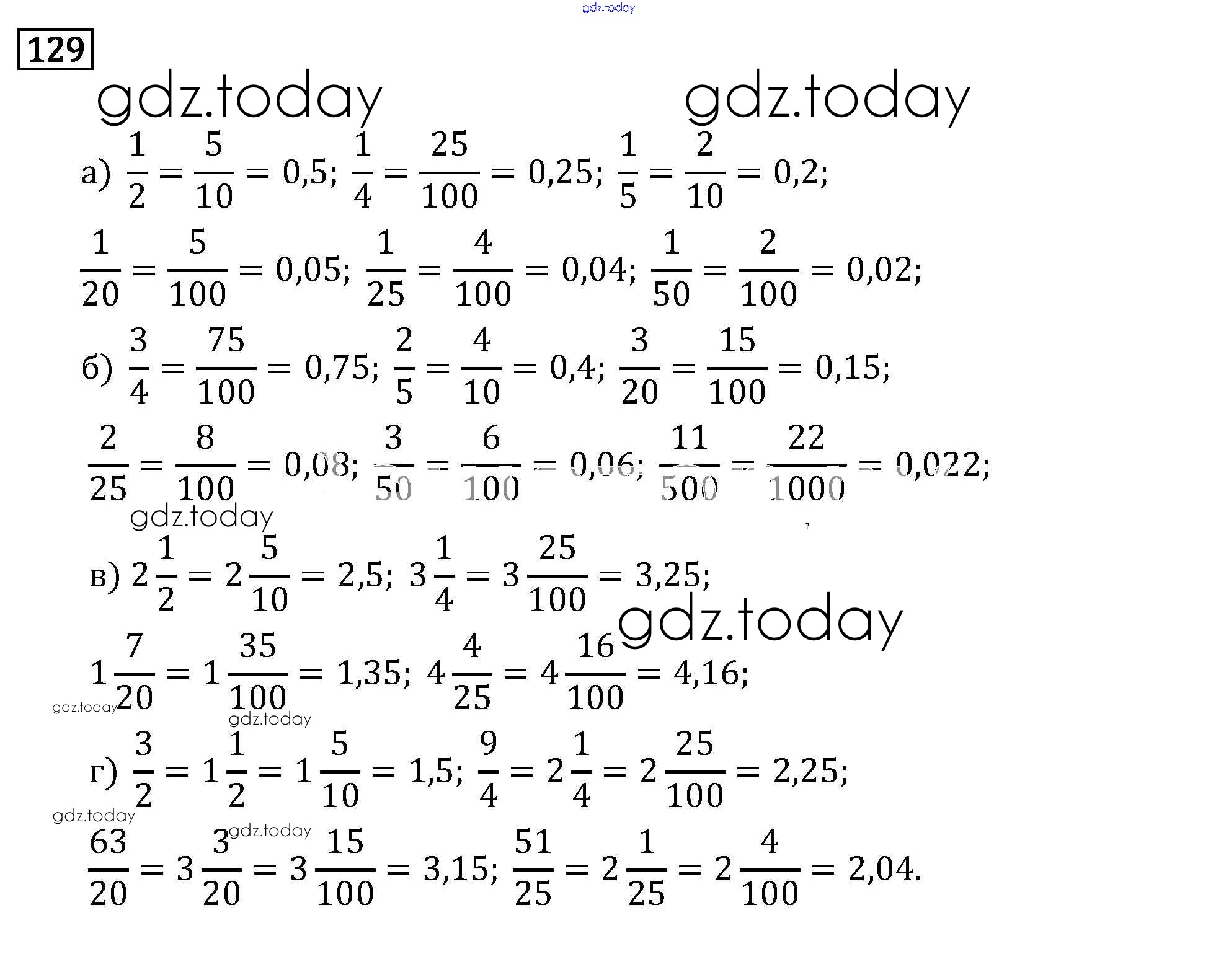 На страницах сайта gdz.today вы найдете учебный и вспомогательный материал, направленный на улучшения знаний школьной программы. ГДЗ - онлайн мир знаний Решение к упражнениям 129 Учебнику по Математике для 6 класса Бунимович, Кузнецова Просвещение Сферы 2019
