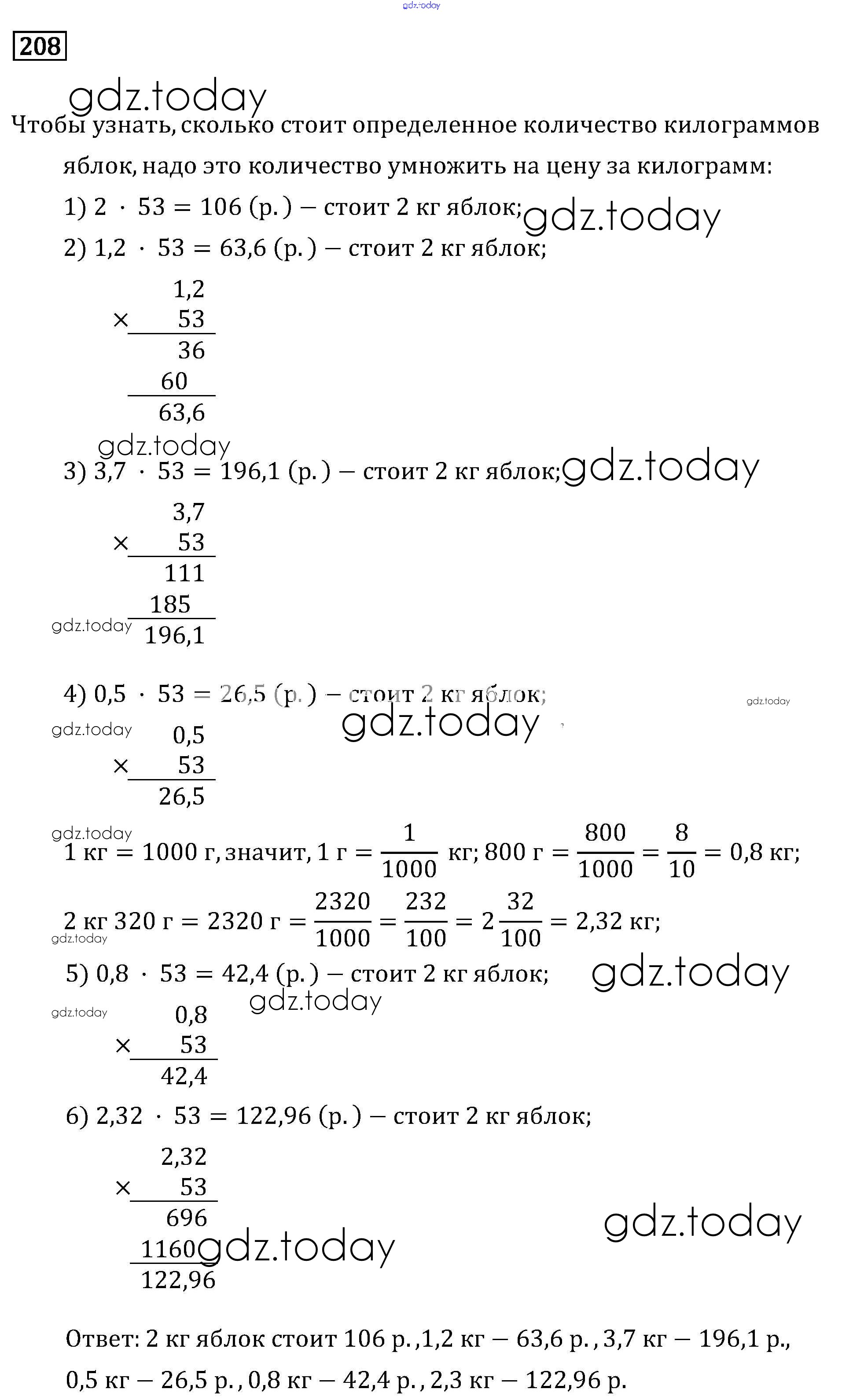 Ответы к Решение к упражнениям 208 Учебнику по Математике для 6 класса Бунимович, Кузнецова Просвещение Сферы 2019