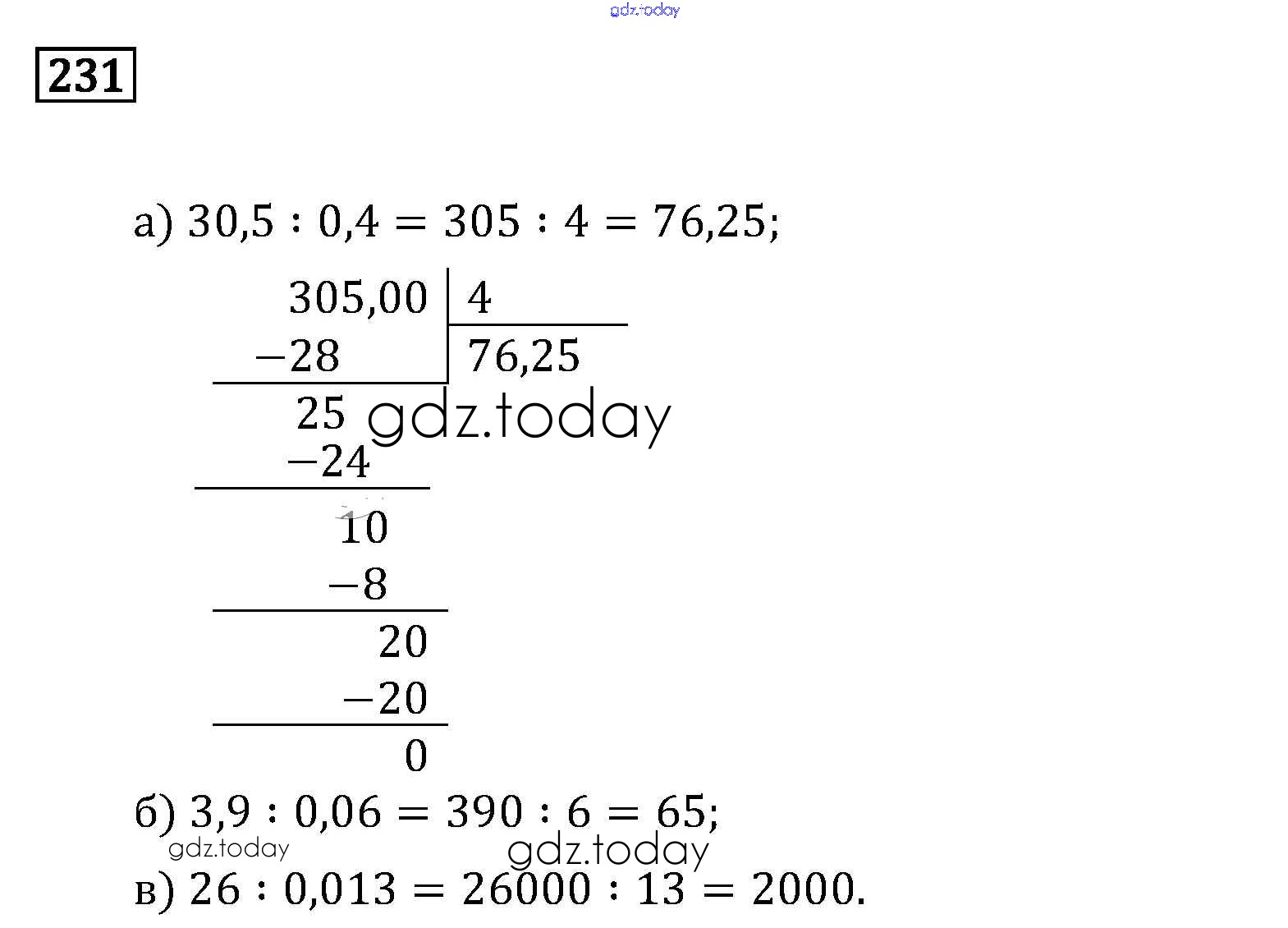 Ответы к Решение к упражнениям 231 Учебнику по Математике для 6 класса Бунимович, Кузнецова Просвещение Сферы 2019
